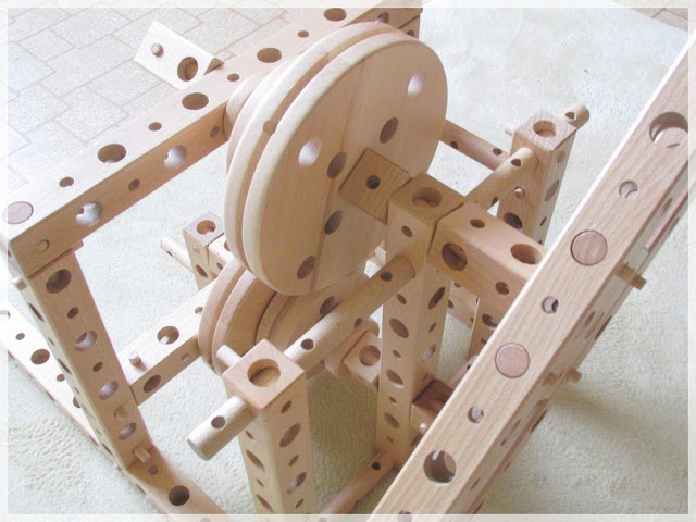 Klaudinka se taky pustila do stavění aneb navlékací kroužky pro nejmenší :-D. A umí postavit i činky na posilování, ty jsem ale nefotila. Ta dětská fantazie je v tomhle super a díky stavebnici si můžou vymyslet vlastní projekt a postavit něco, co bude opravdu fungovat a co můžou opravdu používat tak, jak potřebují a hlavně chtějí. Stavebnice vydrží dost a to je na ní k nezaplacení.