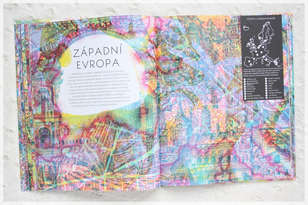 Hravý atlas je velkoformátovou knihou, což považuji jako výhodu, že se k jedné vejde i více dětí a jelikož máme i další knihu z této série (o které taky brzy napíšu), máme i více barevných čoček a holky tak mohou jednu knihu prohlížet skrze čočky obě. Je to pro ně kouzelné a fascinující. Navíc se naučí mnoho nových slovíček, zajímavostí a informací.