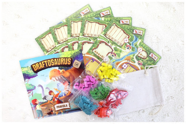Draftosaurus je hra pro děti ve věku od 8 let, je opravdu rychlá ve smyslu čtvrt hodinky na partii a my ji měli v jarních "mačkách", což jsem vůbec nečekala a bylo to opravdu překvapení, ale holky dinosauří téma dlouhodobě baví, tak jsem si řekla, že je alespoň společně zase k nějaké hře dostanu.