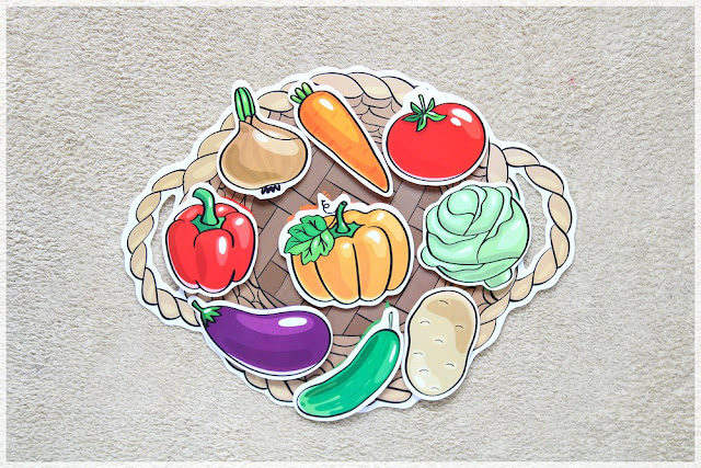 Druhů ovoce a zeleniny je celkem 18 - najdete tam nejznámější druhy jako třeba mrkev, jablko, bramboru, pomeranč, banán ale taky méně známé, jako je například lilek nebo ananas taky děti tak úplně běžně neznají.